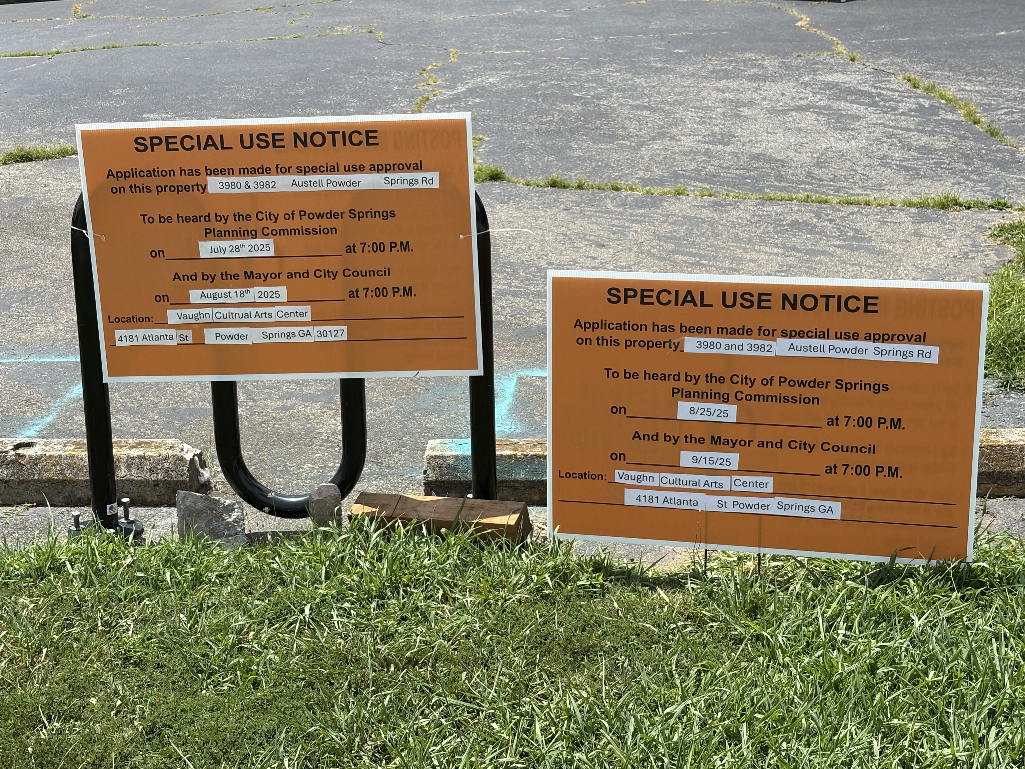 The business, a rage or smash room, holds a special use approval to operate its business at 3982 Austell Powder Springs Road, which was recently renewed for a one-year term in September 2025. The rage room business is a recreational facility where participants safely break items as a form of stress relies. The business owner noted that he received a number of donated items for use in his rage room, and he has submitted an application for special use approval and variance to store these items in a storage trailer that will be parked on site at the rear of the property but partially viewable. The business requires secure, weather-protected storage for breakable inventory and equipment. The proposed trailer would be located at the rear of the property, mostly screened from public view, and used exclusively for operational storage.